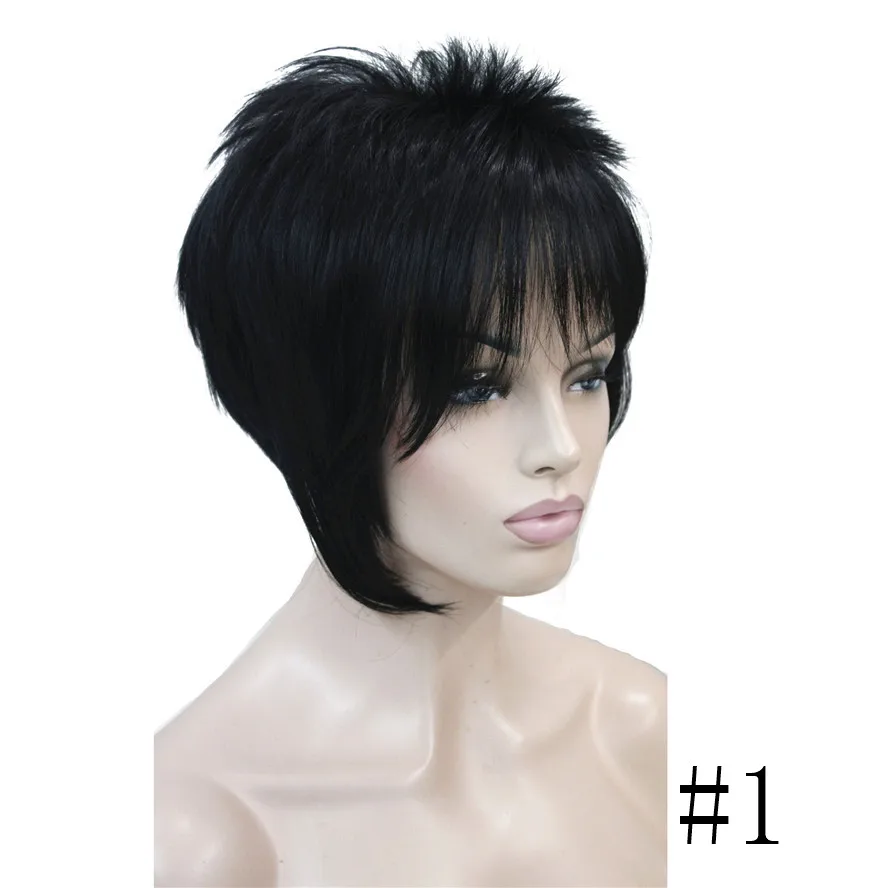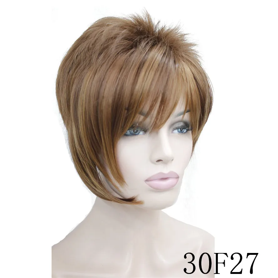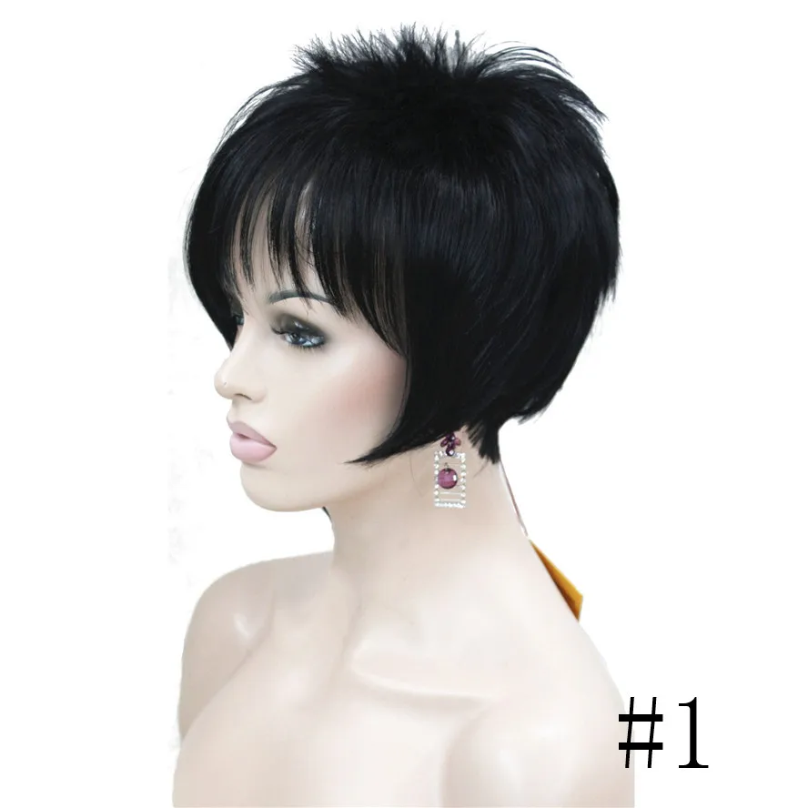 Women’s Wigs Asymmetric Inclined Bangs Short Straight Bob Natural Synthetic Capless Full Wig